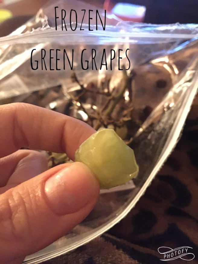 Tonight I was craving something cold and sweet. I took a peak into my freezer and found these sweet things I froze a few nights ago- green grapes!
